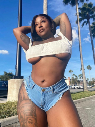 Barbee Bandz is, in her own words, a "Tatted Black Bitch" with 34E breasts and "[j]iggly assets." She is, as she claims, the "Prettiest Chocolate Bitch Alive". We cannot confirm, however, whether she has a "[p]ussy so wet you can surf ... bitch." From what we've seen, though, it looks, like a fun ride. And you need only check her Twitter page, to see this "[r]ound n brown" content producer from Florida is impressive, no doubt, why she has over 377.8K followers. Her Twitter page is loaded with her nude content, from twerk videos, topless public pictures, to nude selfies, that demonstrate that she "love[s] being naked." She is a prolific #TittyTuesday poster, often letting Twitter followers know that "Tuesday are for tittys" and encouraging her friends, "Don’t be shy girls, drop them titties below." And if #TittyTuesdays were not enough, Barbee asks her fans, "You like anal ? I do". So yeah, a lot of that as well. And in case you were wondering, she says her "Pussy taste like Pineapple." "Look me in the eyes when you fucking me". You can also find her on Instagram, with her 597K followers, but it's Instagram. It is loaded with her videos in public--before she pulls down her top (though, she does have some well done cosplay for her 13 days of Halloween).